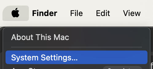 1. Click on the Apple icon at the top left of your screen and then System Settings.